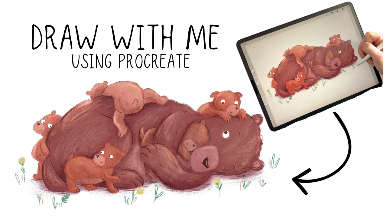 The piece I'm working through in this tutorial is a cute bear illustration featuring a mummy bear and her baby cubs. It's exactly the kind of warm, emotive, character-driven scene that I love drawing and the kind of illustration style my brushes were create for.